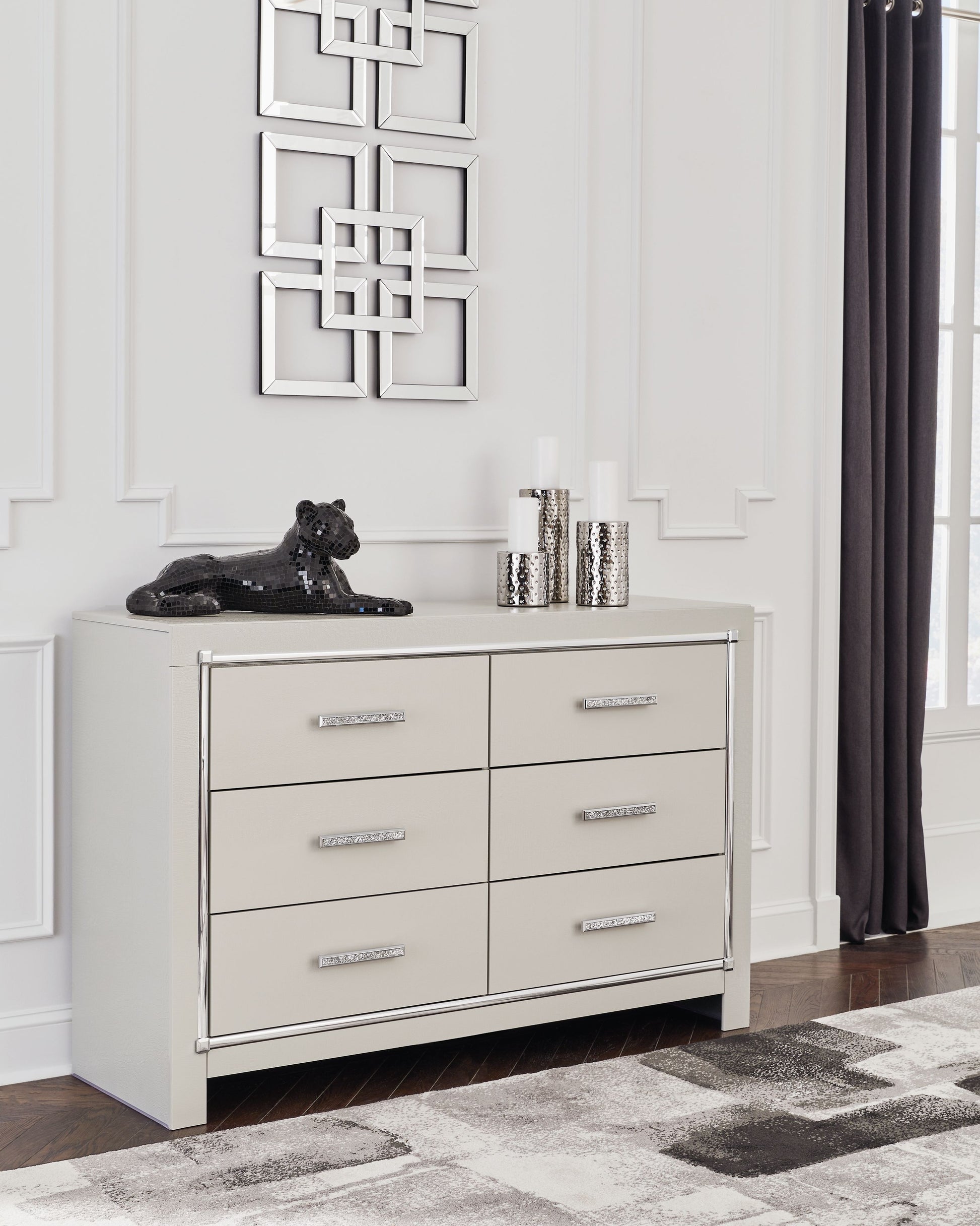 Zyniden - Silver - 5 Pc. - Dresser, Mirror, Chest, King Upholstered Panel Bed